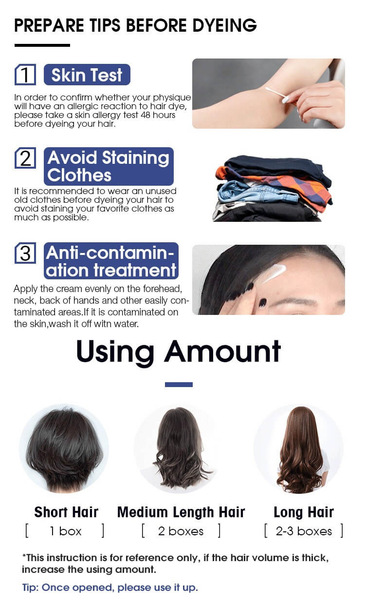 It is suggested to buy 2 packs or more if you have thick or long hair, in order to get a better dyeing effect and avoid shortage.